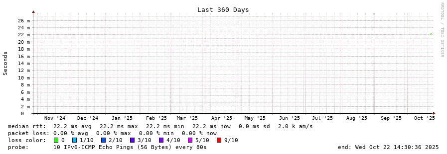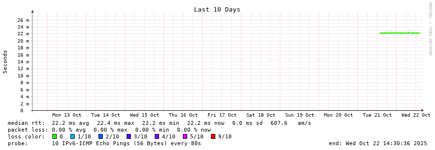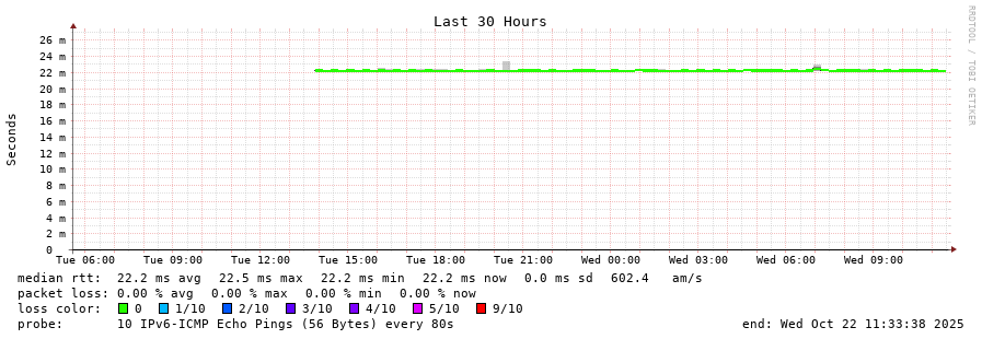 traceroute to 2001:b68:d::28 (2001:b68:d::28), 30 hops max, 80 byte packets - Generated at 2025-10-22 01:00:01