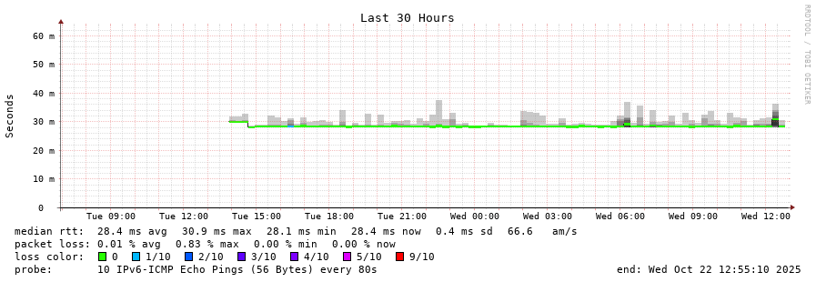 traceroute to 2001:67c:1e0:0:c225:e9ff:fea8:6a0a (2001:67c:1e0:0:c225:e9ff:fea8:6a0a), 30 hops max, 80 byte packets - Generated at 2025-10-22 03:15:01