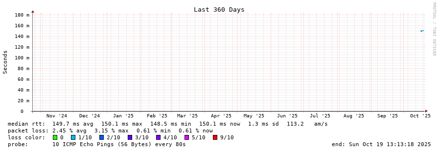 12 > 138.0.41.59 (138.0.41.59) [AS52320] 149.207ms 148.985ms 148.995ms