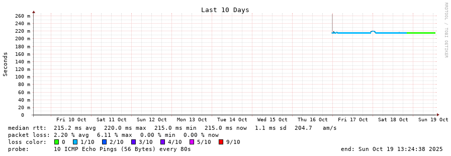 traceroute to 190.105.0.2 (190.105.0.2), 30 hops max, 60 byte packets - Generated at 2025-10-18 17:00:01